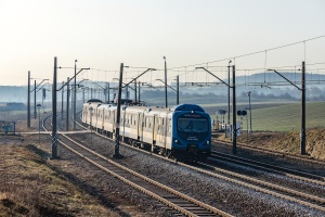 09.05.2020 | podst. Biała Wyżna | EN57-1129 jako osobowy 30684 relacji Krynica-Zdrój - Tarnów zjeżdża "pętlą grybowską" z Ptaszkowej do Grybowa, mijając za chwilę posterunek odstępowy w Białej Wyżnej. W tle zabudowa Grybowa, obok której za kilka minut przejedzie widoczna jednostka. Choć w linii prostej jest zaledwie 1,2 km, po "kryniczance" z uwagi na różnicę poziomów trzeba pokonać blisko 5 km. |