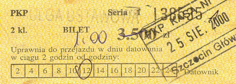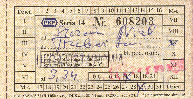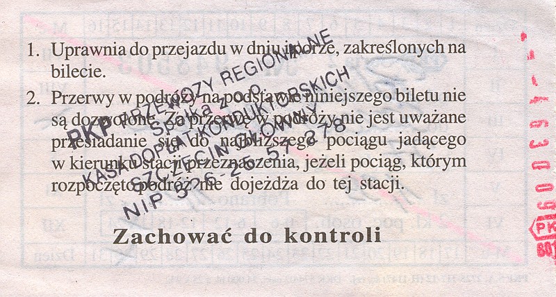 Bilet wypisany przez konduktora, przedostatni dzień kursowania