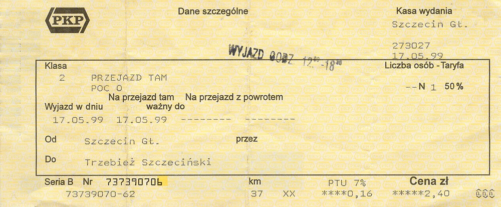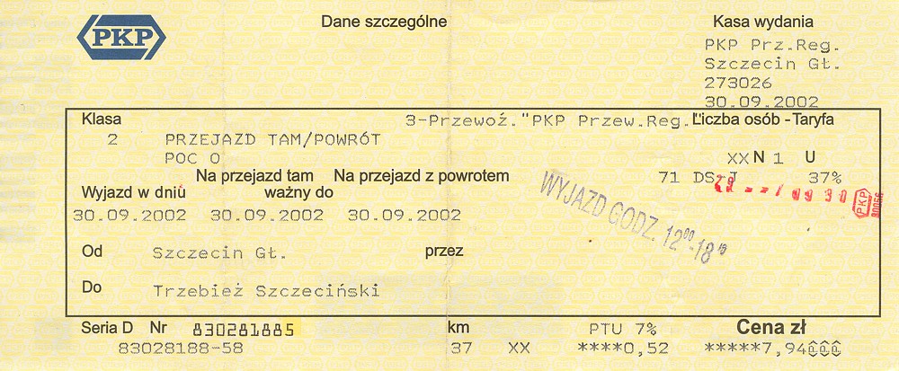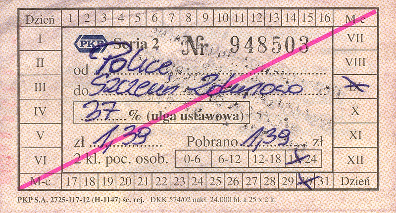 Bilet wypisany przez konduktora, ostatni kurs z Polic