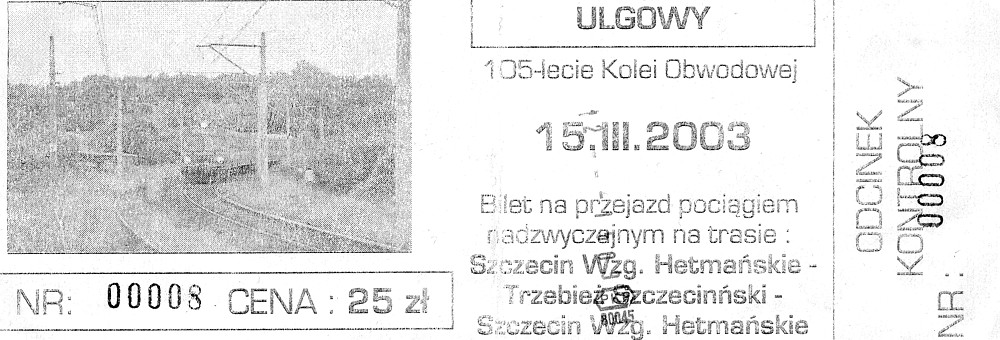 Bilet z imprezy z okazji 105-lecia linii Szczecin - Trzebież
