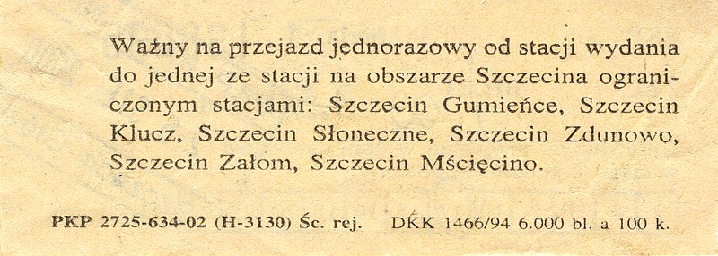 Rewers biletu wypisanego przez konduktora, ostatni kurs z Polic