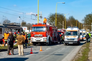 27.03.2008 | Szczecin, al. Wojska Polskiego | Widok na tramwaj oraz służby ratunkowe.