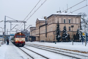 12.02.2011 | Dobiegniew | EU07-323 z pociągiem do Lublina zatrzymuje się przy odremontowanym budynku dworcowym.