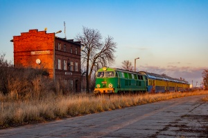 10.12.2011 | Miejska Górka - Sarnowa | Pociąg specjalny z SU45-116 na czele jako pociąg specjalny nr 77209 relacji Miejska Górka - Leszno powoli dojeżdża do przystanku Sarnowa. W tle zabudowa Miejskiej Górki.