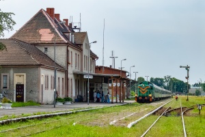27.06.2005 | Stare Bielice | SM42-1115 wjeżdża na byłą stację Stare Bielice z pociągiem osobowym do Kostrzyna (nr 33329). Zadbany peron i kwiaty są efektem pracy dróżnika przejazdowego w budynku stacyjnym. W grudniu 2008 w ramach modernizacji (automatyzacji) przejazdu, wycięto semafory kształtowe jak i zlikwidowano dróżnika. |
