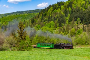 16.05.2015 | Przysłup Plac | "Kapeć" (Kp4-3772) opuszcza z pociągiem specjalnym przystanek Przysłup Plac, gdzie odbywał się niegdyś załadunek dłużycy.