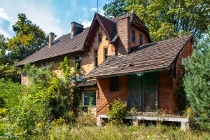 05.09.2015 | Spórok | Drzwi wejściowe do budynku stacyjnego w Spóroku. Stacja zlokalizowana była na jednej z tras wylotowych ze Śląska, intensywnie wykorzystywana za czasów PRL przy transporcie węgla na północ kraju (m.in. do portów w Gdyni/Gdańsku i Szczecinie). Linia przestała być wykorzystywana na początku lat 2000.