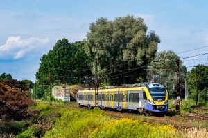 16.12.2017 | Kraków Główny | EN78-004 obsługując wahadłowo linię SKA1 z Wieliczki do Kraków Lotnisko, mija kościół pw. św. Mikołaja, jadąc modernizacją wówczas krakowską trasą średnicową. |