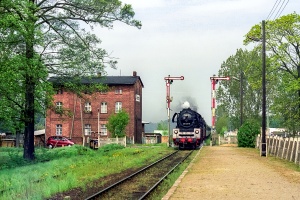 01.05.2004 | Laski Odrzańskie | Pociąg specjalny z Cottbus do Wolsztyna mija nieczynny przystanek Laski Odrzańskie na linii Gubin - Czerwieńsk. Jako drugi parowóz BR03 2204-0. |